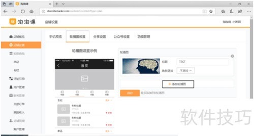 50、 店铺首页可展示最多五张轮播图,提升整体视觉效果。可将知识商品封面用作轮播图,并设置跳转链接,点击后直达精品知识页面,增强用户体验与内容曝光。