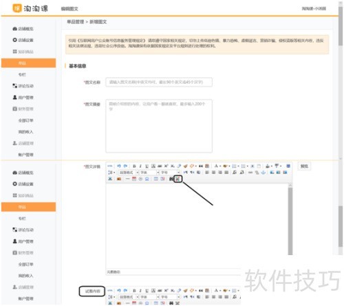 18、 创建单品图文示例,需填写标题、摘要并上传封面图片。