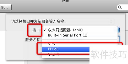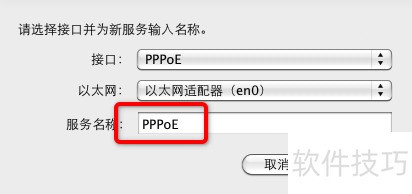 5、 选择以太网后,使用默认设置即可。接着输入服务名称,名称可自定义,根据个人喜好设定,例如我将其命名为PPPoE,最后点击创建完成操作。