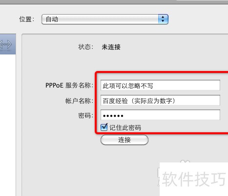 6、 填写服务名称(可选),输入宽带账号和密码即可。若遗忘账号密码,可查看原有拨号记录,或联系网络运营商获取帮助。