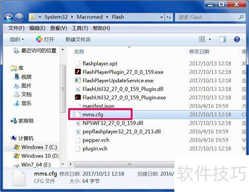 6、 打开Flash文件夹,找到mms.cfg文件,使用记事本进行编辑。