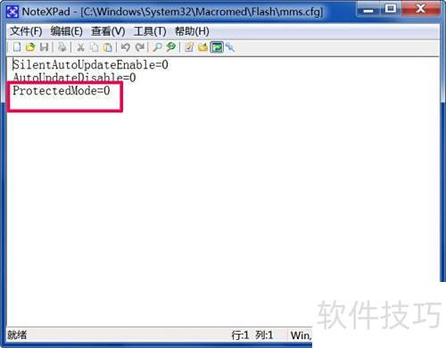 7、 手动添加 ProtectedMode=0 一行,保存后退出即可完成设置。