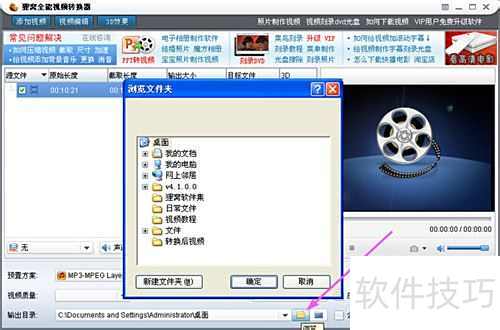 7、 完成MP3音频参数设置后,接下来需配置文件转换的输出路径。点击主界面底部的输出目录选项,可自由选择转换后的文件保存位置,支持任意硬盘分区或桌面文件夹,方便快捷。