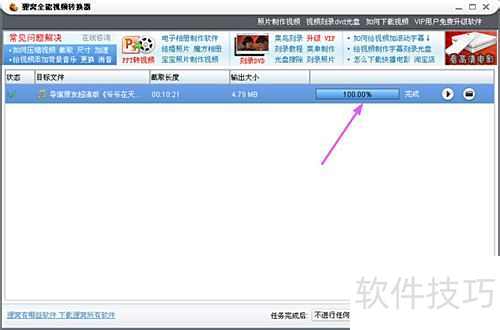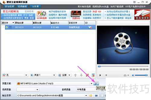 8、 设置好输出路径后,点击主界面右下角的视频转换按钮,即可开始转换为MP3格式,具体操作所示。