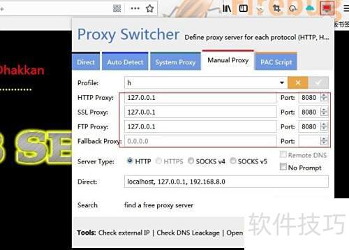 4、 利用Burp Suite进行部分猜测分析,启用其默认代理配置,并在浏览器中设置相应代理连接。