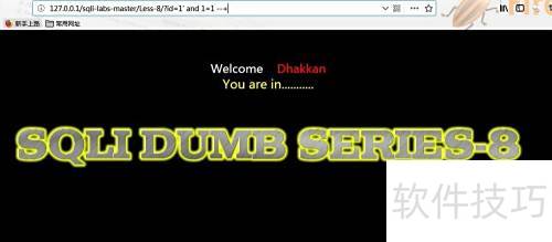 1、 利用phpstudy结合sqli-labs搭建环境,对第八关注入平台进行测试,进入sqli-labs第八关的页面界面开展实验操作。