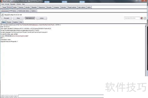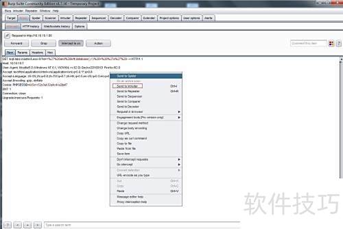 5、 刷新网页时,Burp Suite会拦截请求,右键点击后选择发送至Intruder模块进行进一步处理。