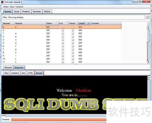 8、 点击开始攻击,按长度排序,找出正确响应页面,随后点击响应查看渲染内容,即可看到正常访问的页面信息。