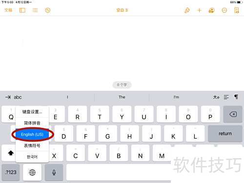 7、 切换至英文键盘,长按球形图标,随后即可在键盘上找到并输入英文单引号。