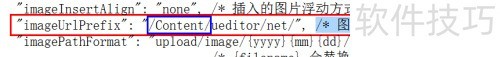 5、 将ueditor文件夹置于Content目录下,因此图片访问路径前缀需相应配置,其他设置依此类推。