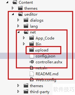 3、 在ueditor目录下的net文件夹中新建upload文件夹,用于存放上传的图片。