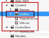 2、 将下载的文件重命名为ueditor,并移至Content文件夹内。