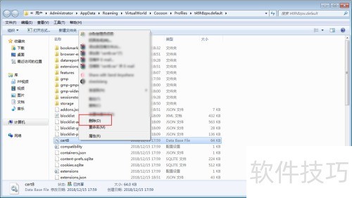 8、 右键删除该文件,若无法删除,请先完全退出浏览器再尝试操作。
