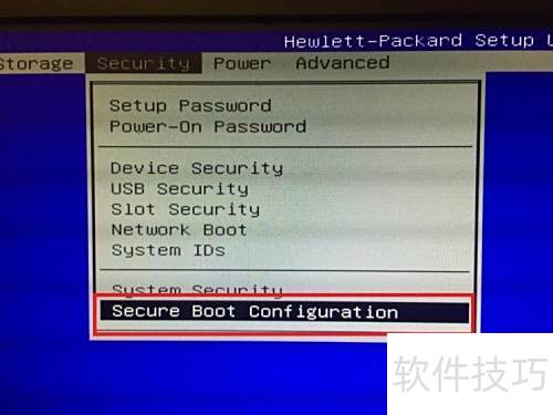 3、 进入安全设置界面,选择安全启动配置选项进行相关设置。