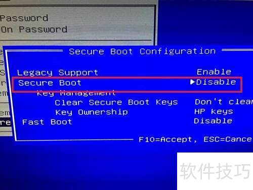 6、 将选项设为disable即表示关闭,关闭后需将上方的legacy support开启(设为enable),这样才能顺利安装如Win7等操作系统。