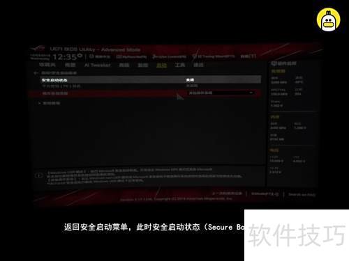 5、 返回安全启动菜单后,Secure Boot状态显示为已关闭。