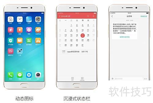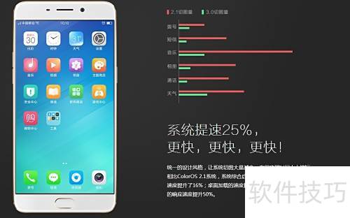 1、 OPPO ColorOS 3.0系统经过全面革新,界面更流畅,操作更简洁。专注优化用户体验,有效屏蔽冗余信息,提供更智能、实用的防护功能,带来清爽高效的使用感受。