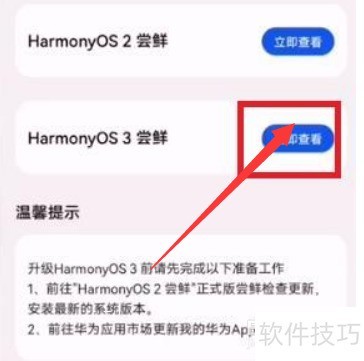 3、 在界面中找到HarmonyOS 3,点击立即查看进入相关页面。