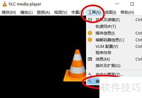 1、 启动VLC媒体播放器,点击工具菜单中的偏好设置选项即可进入配置界面。