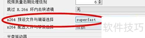 3、 第三步,进入x264预设与调谐选项,将其属性值设置为superfast。