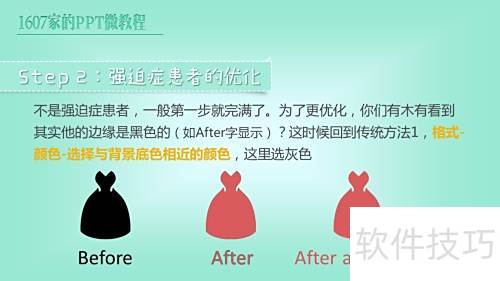 11、 并非强迫症,通常第一步已足够完善。但若想进一步优化,可留意文字边缘是否呈现黑色(如After字样所示)。此时可回归传统方法一,通过格式设置颜色,选择与背景相近的灰色进行调整,使整体更协调自然。