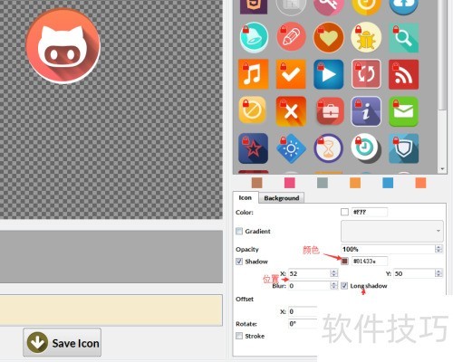 10、 可自定义调节图标的阴影样式及位置等参数设置。