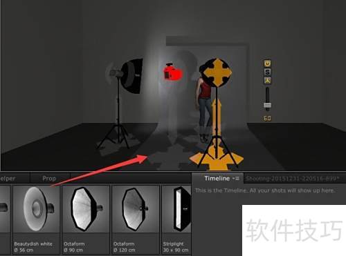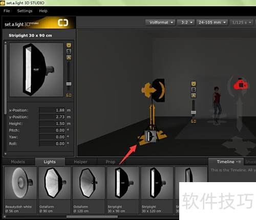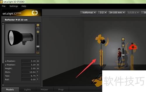 6、 通过调整Set A Light 3D Studio软件中的灯光与相机设置,模拟室内摄影布光,为模特营造理想的光影效果。