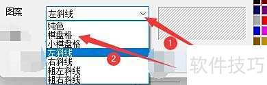 6、 在弹出窗口内点击图案选项,从列表中选取所需图案,例如棋盘格,作为透明背景的显示样式。