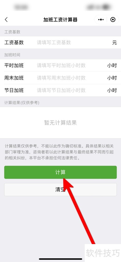 3、 输入周六加班小时数,点击计算按钮即可得出结果。