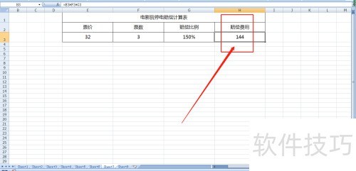 6、 第四步,按下回车键,即可算出电影院停电的赔偿金额。