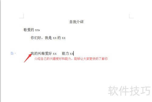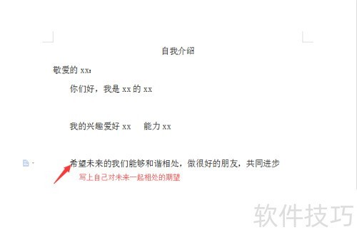 1、 将自我介绍四个字居中书写,既美观又符合格式要求。