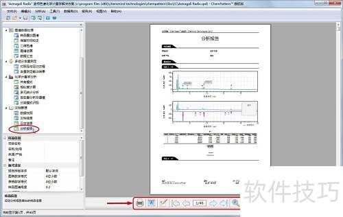 3、 在树形菜单中选择文档管理下的分析报告,系统将根据预设信息自动生成报告,随后可在指定编辑区域进行打印、页面设置等操作。