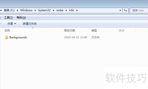 7、 完成前述步骤后,关闭注册表编辑器,依次进入我的电脑中的C盘,打开Windows文件夹,进入System32目录下的oobe子目录,再进入info文件夹。在此处新建一个名为Backgrounds的文件夹,创建完成后双击打开该文件夹即可继续后续操作。