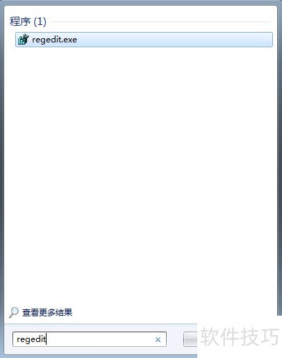 4、 在电脑左下角点击开始菜单,于搜索框中输入regedit,双击回车即可打开注册表编辑器,操作所示。