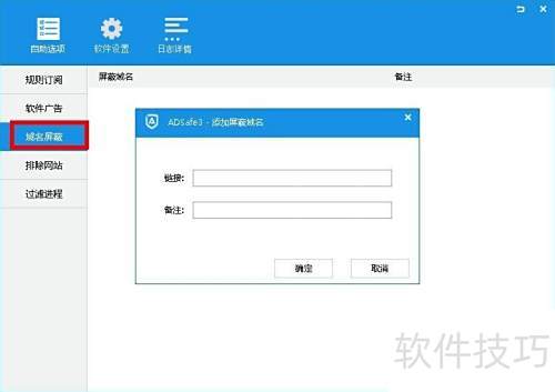 4、 可在此处添加需屏蔽的域名,点击添加按钮即可阻止特定网站广告。