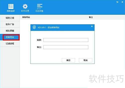 5、 继续点击下一项设置,即排除网站选项,添加的网址将自动跳过,不会被屏蔽。