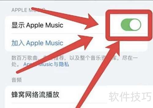 6、 开启显示Apple Music选项后,Music功能即可正常显示。