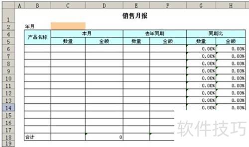 14、 在D3单元格输入公式:=IF(&A3>1,C3/C3,0),设置父格为月份单元格,随月份自动扩展。当&A3大于1时,表示从第二年开始,计算当月金额与上年同期的比值;否则显示0。