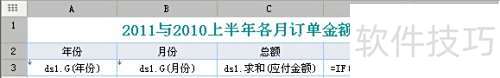 11、 将ds1数据集的SQL语句修改为:select strftime(%Y,订购日期) as 年份, strftime(%m,订购日期) as 月份, 应付金额 from 订单,用于提取每条记录的年份、月份及对应的应付金额,从而统计各个年月的销售金额数据。