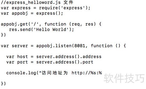 3、 新建文件express_helloworld.js,并在其中写入指定内容。