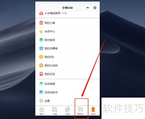 1、 打开手机小米Lite,点击底部购物车图标,或添加商品后进入购物车页面,操作所示。