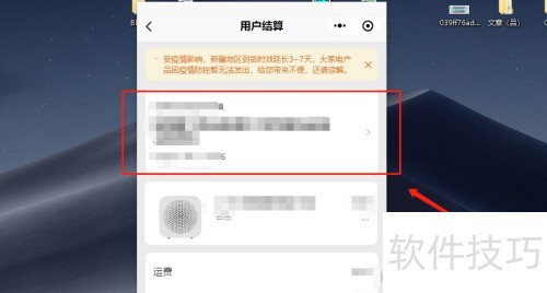 3、 商品结算页将展示软件默认地址,点击可查看详细信息,所示。