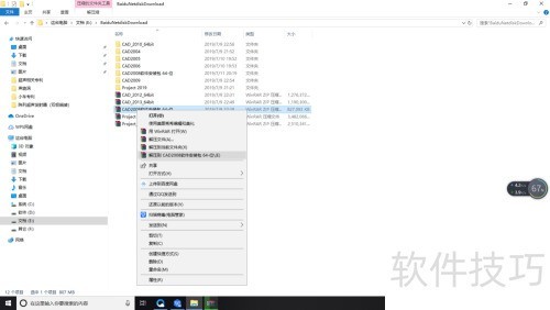 1、 找到已下载的安装包,右键点击并选择解压至CAD2008软件安装目录,操作所示。