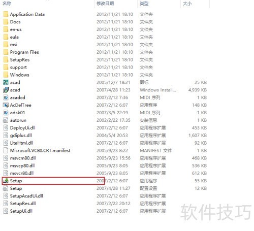 3、 寻找CAD2008软件的安装文件,参照图示操作。