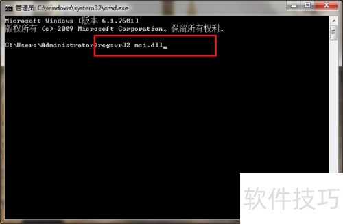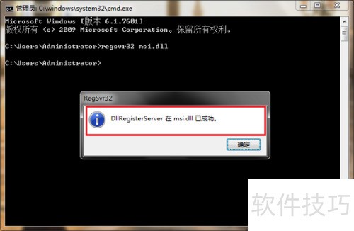 3、 按下回车键后,系统提示msi.dll中的DllRegisterServer执行成功,具体结果所示。