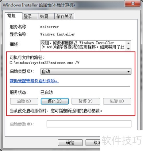 6、 进入Windows Installer服务属性,将启动类型设为自动,启动服务后点击确定即可解决,具体操作所示。