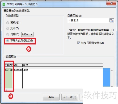 5、 身份证地区代码位于分列线前段,非出生日期信息,故选择不导入该列。