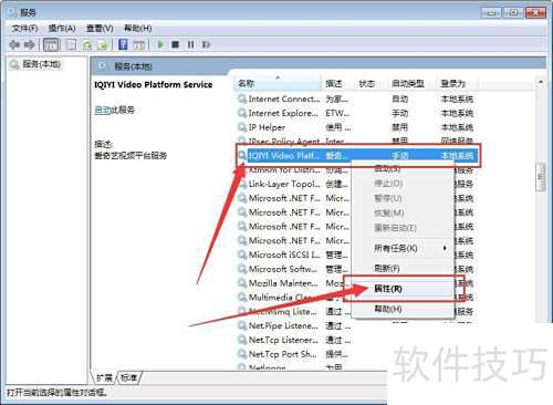 4、 若需将IQIYI视频平台服务设为自动启动,可右键点击该服务项,在弹出的菜单中选择属性,进入IQIYI视频平台服务属性(本地计算机)界面,随后在启动类型中选择自动,并确认设置,以确保服务在系统启动时自动运行,保障相关功能正常启用。