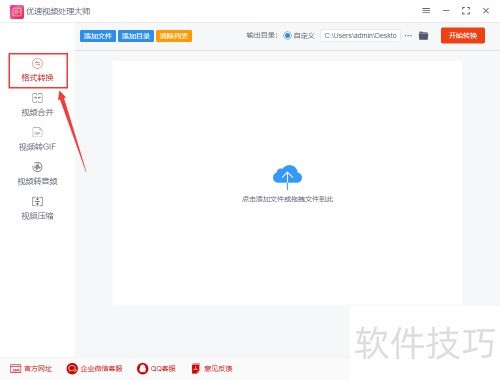 1、 首先启动电脑,运行优速视频处理大师2.0.2.1,选择界面左侧顶端的功能,该功能支持将二十多种不同视频格式转换为mp4格式,操作简便,兼容性强,满足多种转换需求。