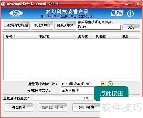 2、 DVD全能转换工具是MP4/RM转换专家内置的功能模块。启动MP4/RM转换专家后,进入主界面,于右下角找到并点击DVD全能转换工具按钮,即可进入该工具的操作界面,开始进行相关转换操作。